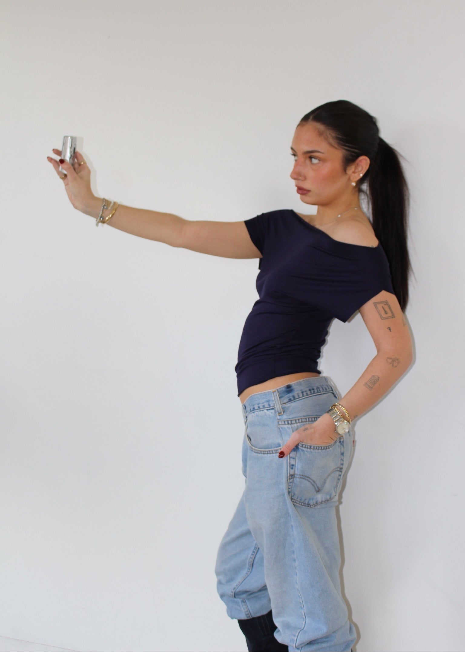 Navy Blue Off Shoulder Top