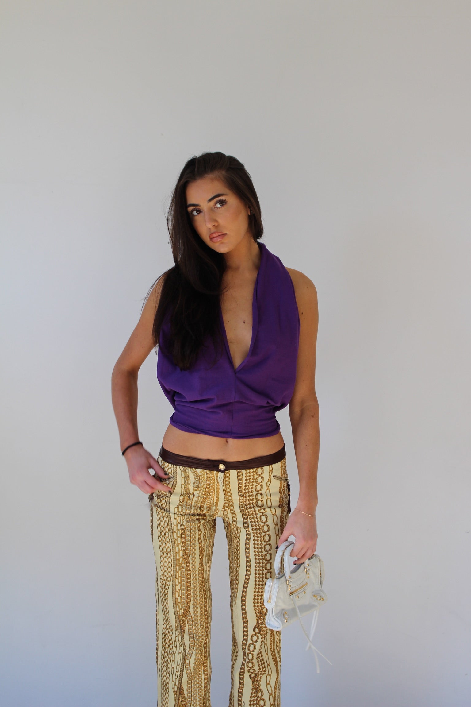 Bold, sexy, and effortlessly cool—this deep plunge halter is your new statement staple. With a sleek drape and open back, it's made to turn heads while staying light and breathable. It gives that elevated touch, whether you're headed out or dressing up denim. Made from a soft, fluid blend (93% polyester, 7% spandex), it moves with you and flatters all the right places. One size fits most (best for S–M /adjustable tie-back fit).